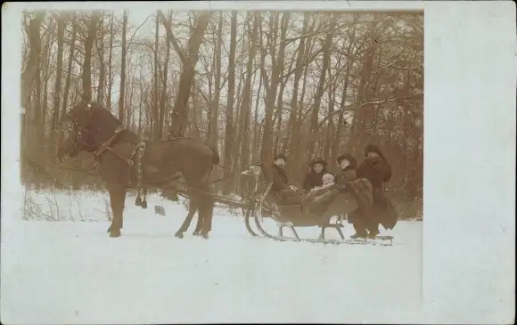 Foto Ak Personen in Winterkleidung in einem Schlittengespann, 1922