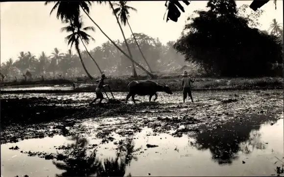 Foto Ak Peschawar Pakistan, Bauern, Pflug