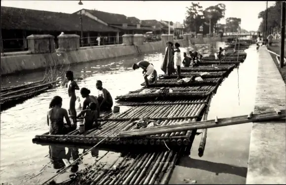 Foto Ak Peschawar Pakistan, Wäscherinnen am Flussufer