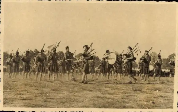 Foto Ak Pfadfinder in schottischen Trachten, Dudelsack