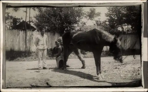 Foto Ak Pferd, Schmied, Hufeisen, Soldaten