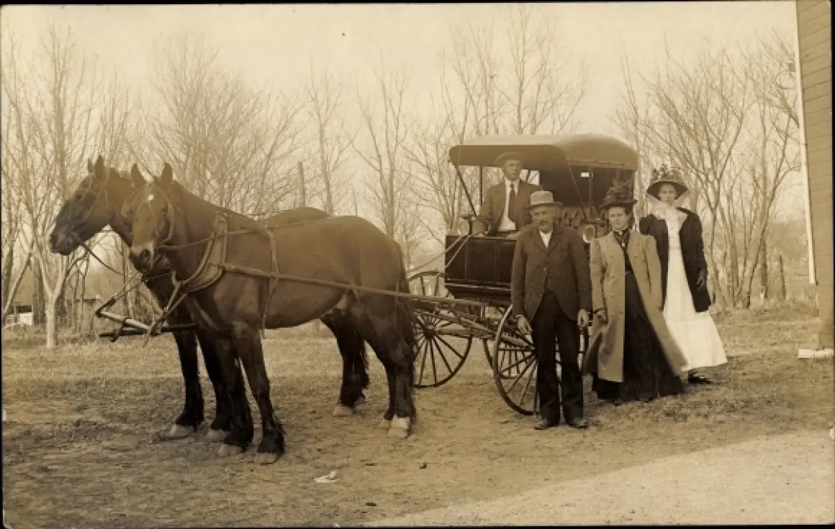 Foto Ak Pferdekutsche, Passagiere, Gruppenportrait