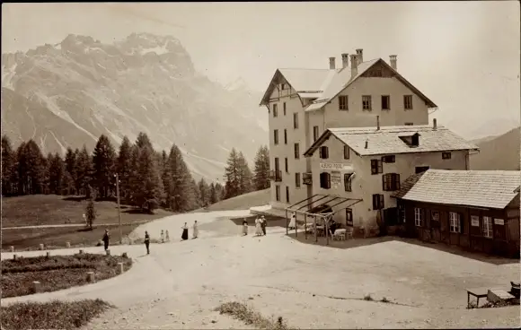 Foto Ak Pocol Cortina d'Ampezzo Belluno Veneto, Partie an einem Gasthaus