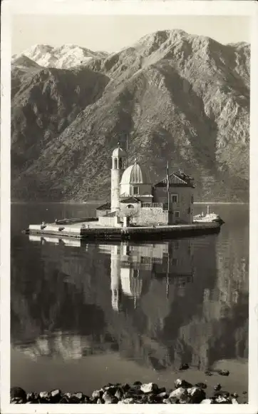 Foto Ak Podgorica Montenegro, Insel im Skutari See, Glockenturm, Berge