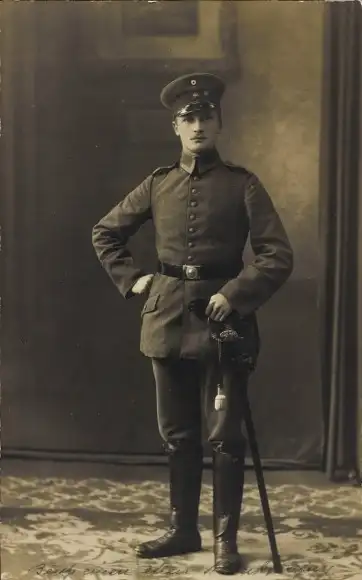 Foto Ak Porträt eines Soldaten mit Pickelhaube, Uniform