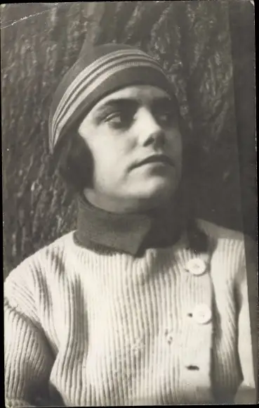 Foto Ak Portrait einer Frau, Mütze, Pullover, Hatty and Mac Deece