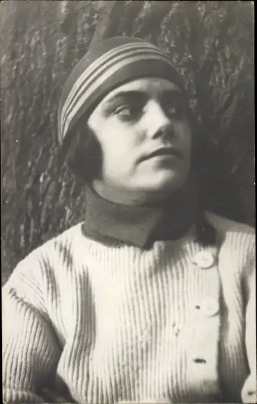 Foto Ak Portrait einer Frau in Winterkleidung vor einem Baum