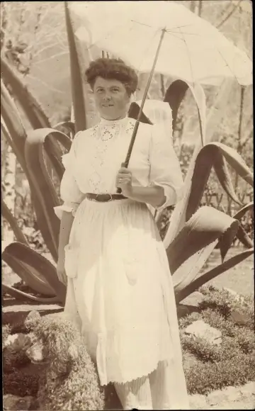 Foto Ak Portrait einer Frau in weißem Kleid, Sonnenschirm