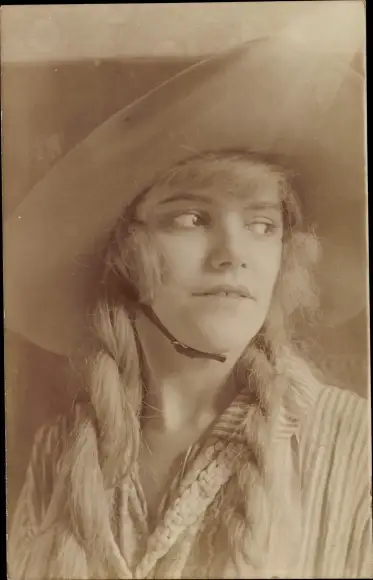 Foto Ak Portrait einer Frau mit Cowboyhut