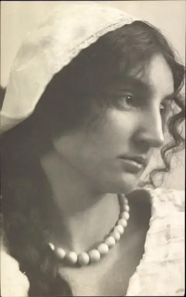 Foto Ak Portrait einer Frau mit Perlenkette und Haube