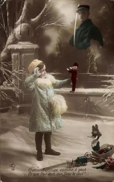 Foto Ak Portrait eines Mädchens mit Soldatenpuppe