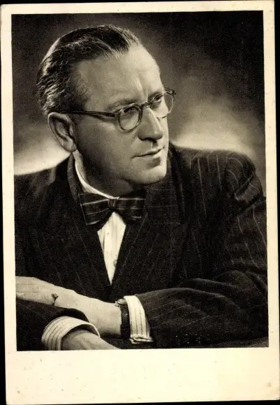 Foto Ak Portrait eines Mannes, Brille, Fliege, Anzug