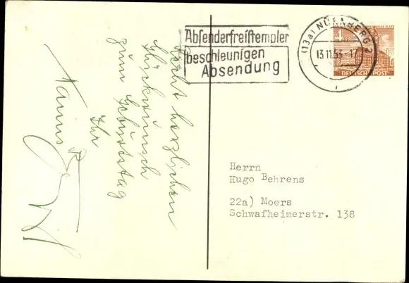 Zustand, siehe Scan, gelaufen, 1953 - ca 10 cm X 15 cm