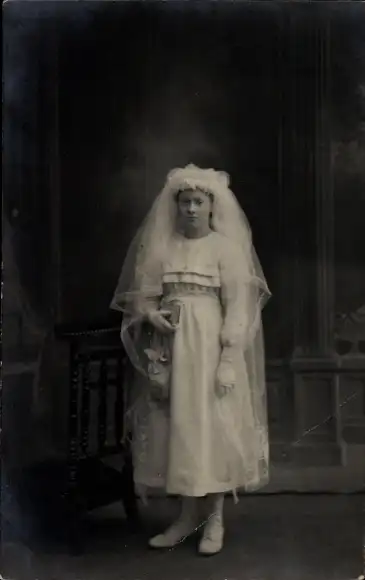 Foto Ak Portrait von einem Mädchen, Kommunion, Jeannnette Jardel