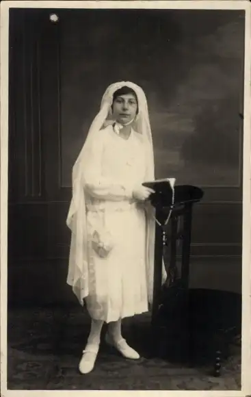 Foto Ak Portrait von einem Mädchen, Kommunion, Rosa Hinsinger