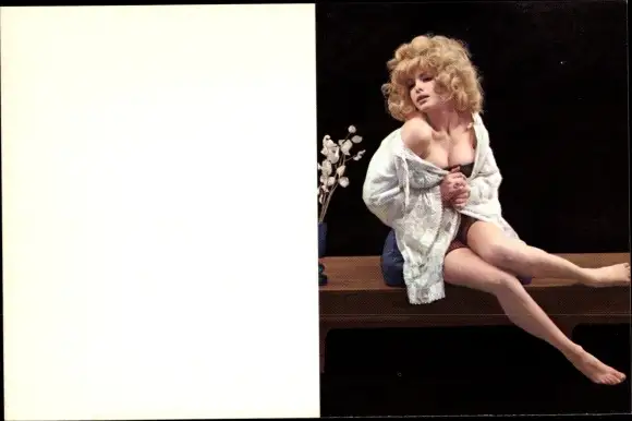 Foto Ak Posierende Blondine mit tiefem Dekollete, Busen
