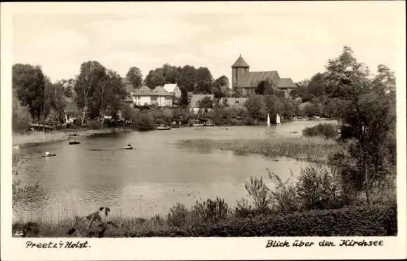 Foto Ak Preetz in Holstein, Kirchsee, Kirche, Boote