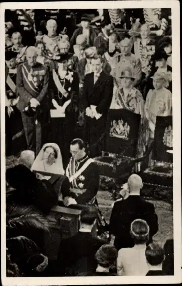 Foto Ak Prinzessin Juliana mit Prinz Bernhard, Hochzeitszeremonie