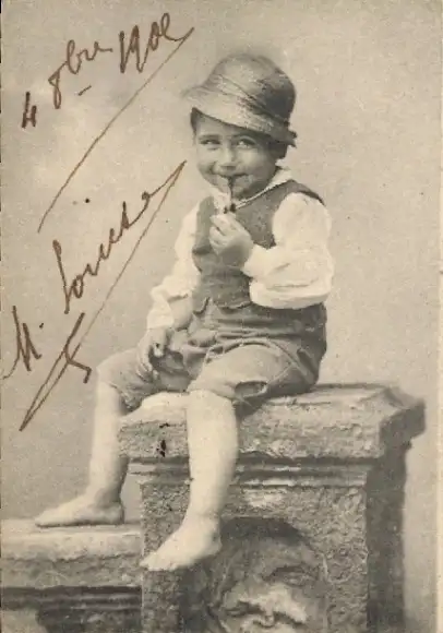 Foto Ak Rauchender Junge, Porträt, Hut, Pfeife