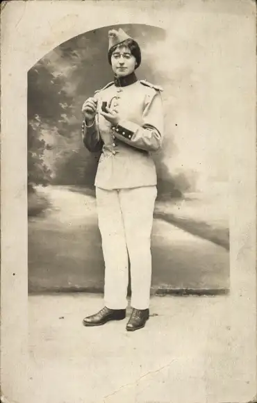 Foto Ak Rauchender Junge, Portrait in Uniform, Pfeife