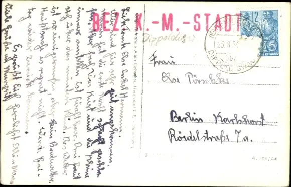 Zustand, siehe Scan, gelaufen, 1954 - ca 14 cm X 9 cm