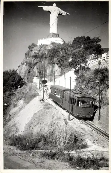 Foto Ak Rio de Janeiro Brasilien, Corcovado, Christusstatue, Bergbahn