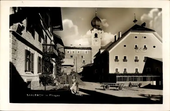 Foto Ak Saalbach Hinterglemm im Pinzgau Salzburg, Teilansicht, Gasthof, Kirche
