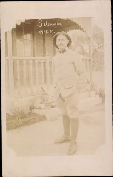 Foto Ak Saloniki Thessaloniki Griechenland, Soldat in Uniform, 1916