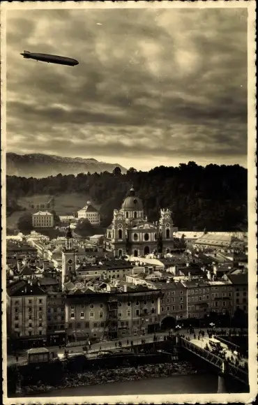 Foto Ak Salzburg in Österreich, Zeppelin über der Stadt