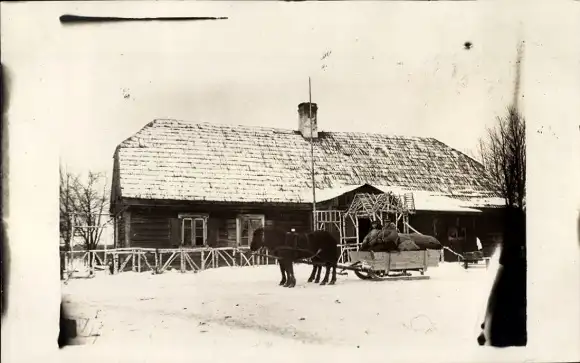 Foto Ak Schreibstube in Süte, Pferdeschlitten
