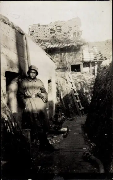 Foto Ak Schützengraben 1. WK, Soldat in Uniform