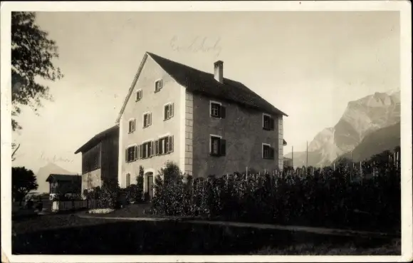 Foto Ak Schweiz, Wohnhaus, Im Hintergrund Berggipfel