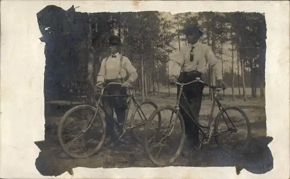 Foto Ak Sebeka Minnesota USA, Zwei Männer mit Fahrrädern