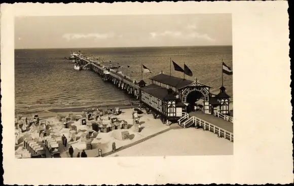 Foto Ak Seebad Binz auf Rügen, Seebrücke, Strandkörbe
