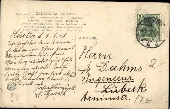 Zustand, siehe Scan, gelaufen, 1907 - ca 9 cm X 14 cm
