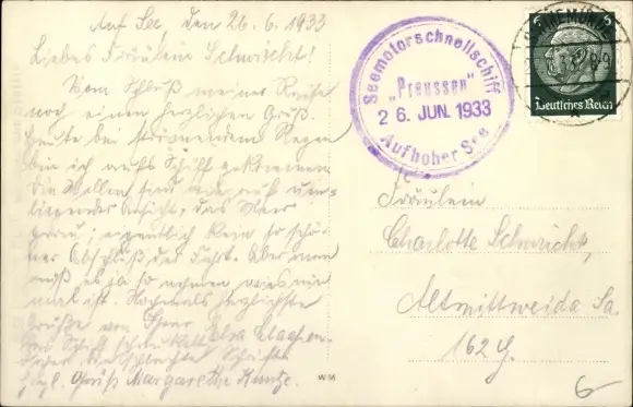 Zustand, siehe Scan, gelaufen, 1933 - ca 14 cm X 9 cm