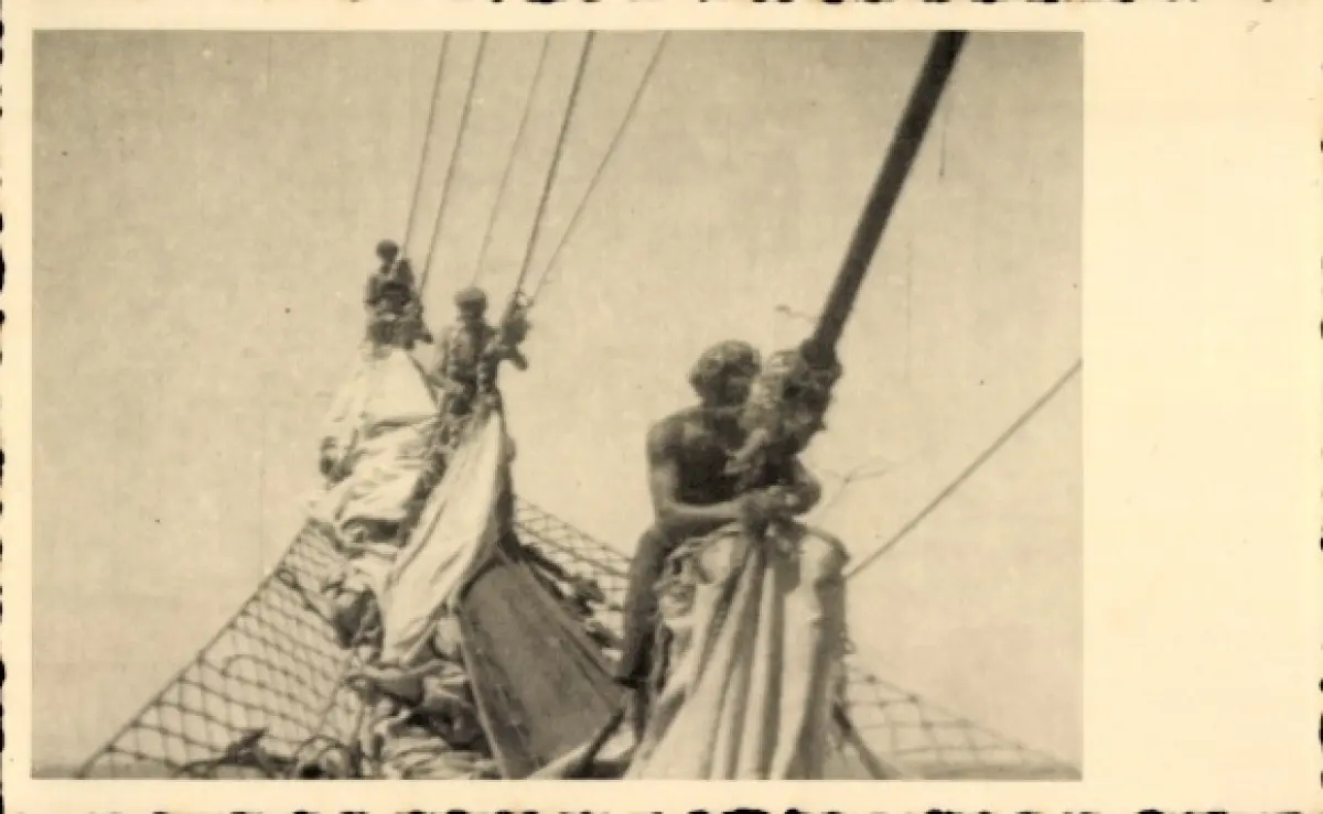 Foto Ak Segelschiff, Matrosen bei der Arbeit am Mast
