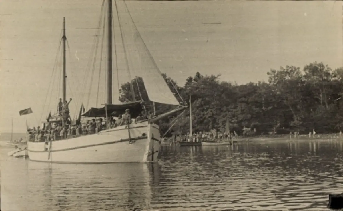 Foto Ak Segelschiff vor der Küste