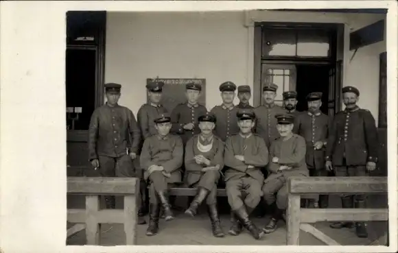 Foto Ak Serbien, Deutsche Soldaten in Uniformen auf dem Bahnhof, I WK