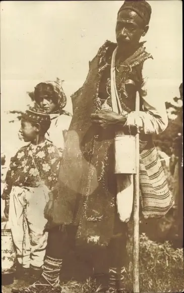 Foto Ak Serbien, Mann und Kinder in Trachten 1916, I WK