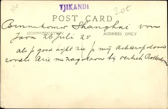 Foto Ak Shanghai China, Frachtschiff Tjikandi im Hafen 1925