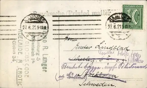 Zustand siehe Scan, gelaufen, 1921 - ca 14 cm X 8 cm