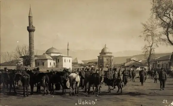 Foto Ak Skopje Üsküb Mazedonien, Viehmarkt, Moschee