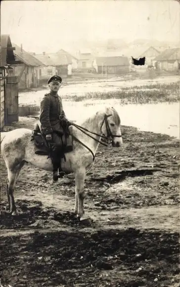 Foto Ak Soldat auf einem Pferd