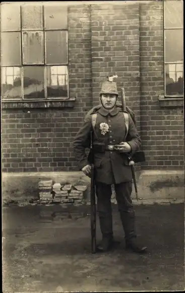 Foto Ak Soldat in Uniform, Standportrait, Gewehr