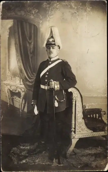 Foto Ak Soldat in Uniform, Standportrait, Pickelhaube