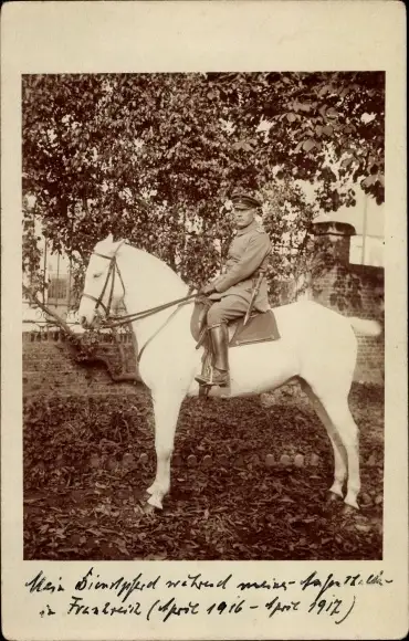 Foto Ak Soldat in Uniform auf einem weißen Pferd