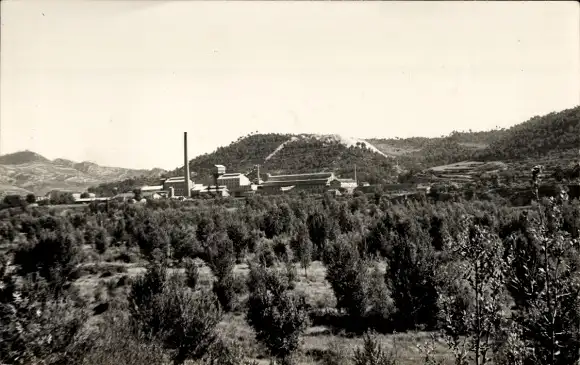 Foto Ak Spanien, Blick zur Fabrik mit Umgebung
