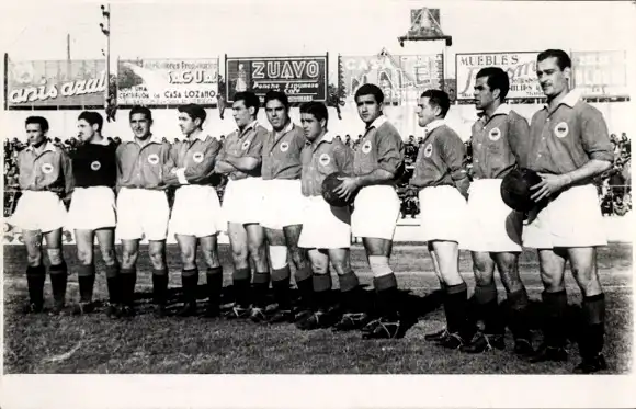 Foto Ak Spanische ? Fußballmannschaft, Reklameschilder