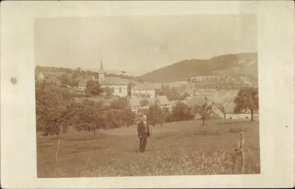Foto Ak Spiegelberg in Württemberg, Panorama, Kirche, Mann
